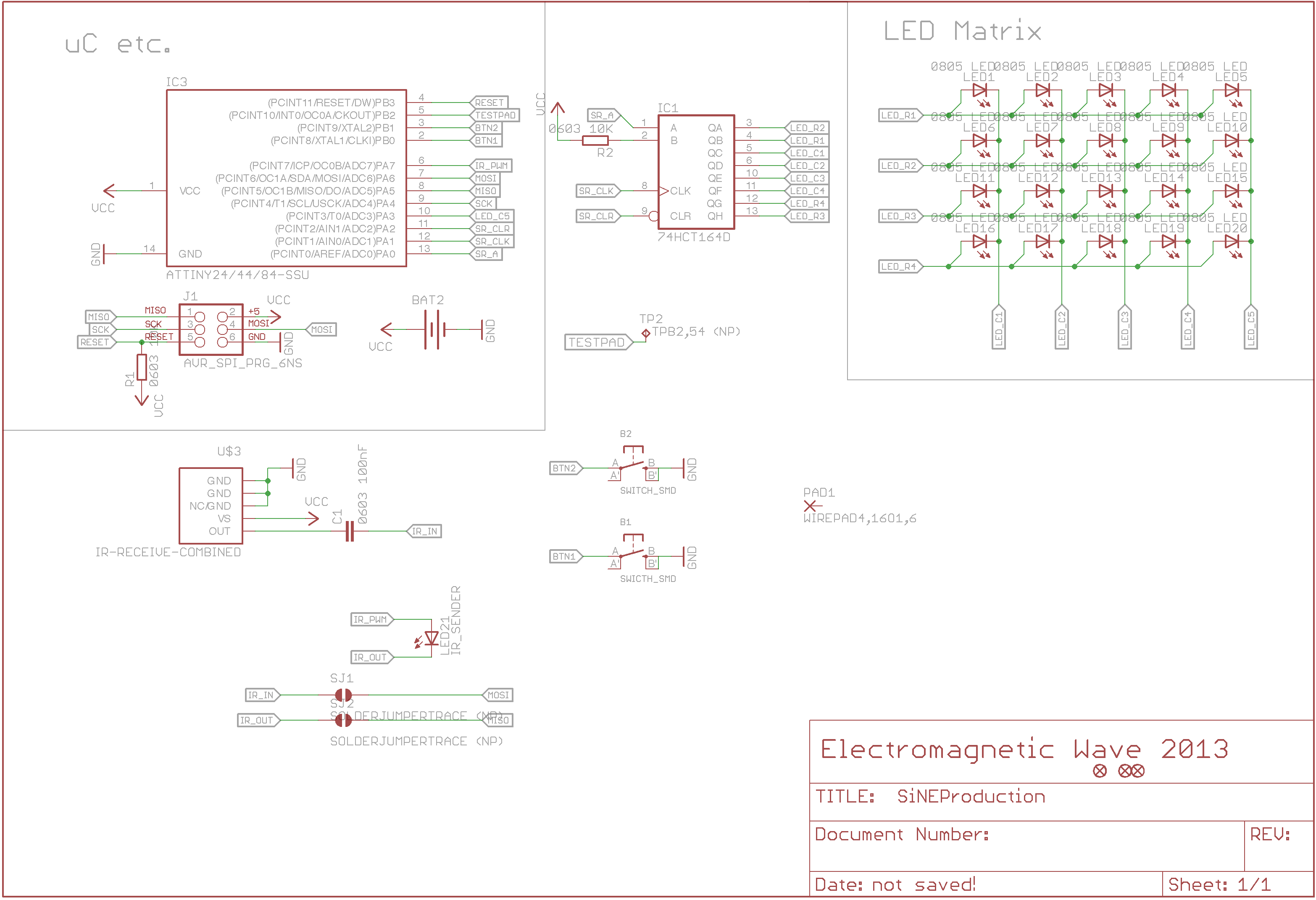- 74HCT164AD - Shift register connecting the matrix of LED's